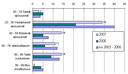 Tieliikenteessä kuolleet onnettomuustyypin mukaan tammi-maaliskuussa 2007