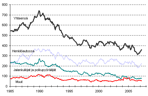Tieliikenteessä kuolleet 1/1985 - 3/2007