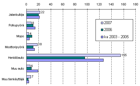 Tammi-heinäkuun tieliikenteessä kuoli 155 henkilöautolla liikkunutta ihmistä, kun vastaava luku vuotta aikaisemmin oli 96. Jalankulkijoita menehtyi 22.
