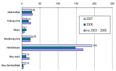 Kuolleiden ja loukkaantuneiden määriä on verrattu vuoden 2006 tammi-syyskuun vastaaviin ennakkotietoihin. Luvut perustuvat poliisin Tilastokeskukselle toimittamiin onnettomuustietoihin.