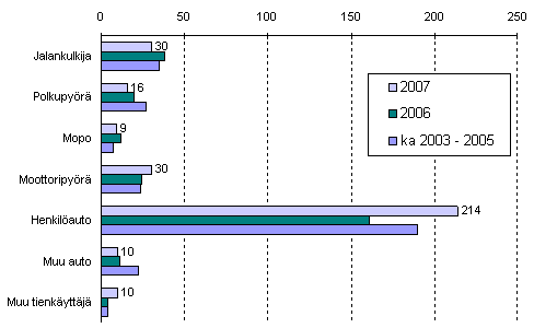 Tieliikenteessä kuolleet tienkäyttäjäryhmän mukaan tammi-lokakuussa 2007