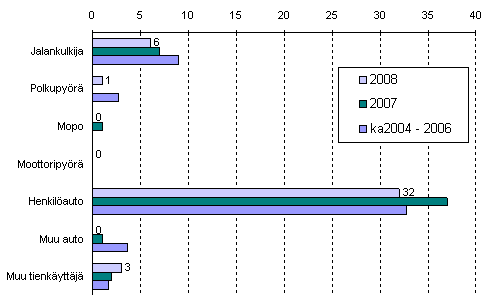Tieliikenteessä kuolleet tienkäyttäjäryhmän mukaan tammi-helmikuussa 2008