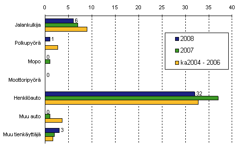 Tieliikenteessä kuolleet tienkäyttäjäryhmän mukaan tammi-helmikuussa 2008