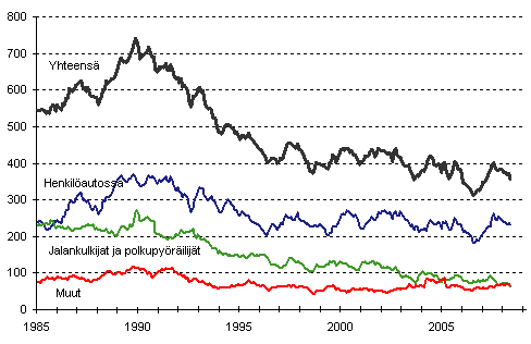 Tieliikenteessä kuolleet 1/1985 - 5/2008