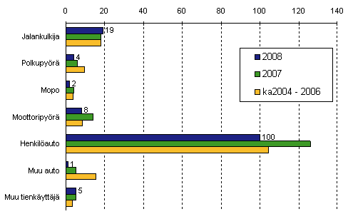 Tieliikenteessä kuolleet tienkäyttäjäryhmän mukaan tammi-kesäkuussa 2008