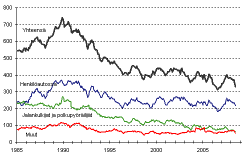Tieliikenteessä kuolleet 1/1985 - 6/2008