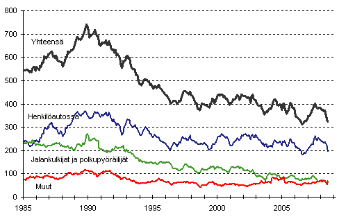 Tieliikenteessä kuolleet 1/1985 - 7/2008