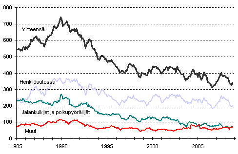 Tieliikenteessä kuolleet 1/1985 - 10/2008
