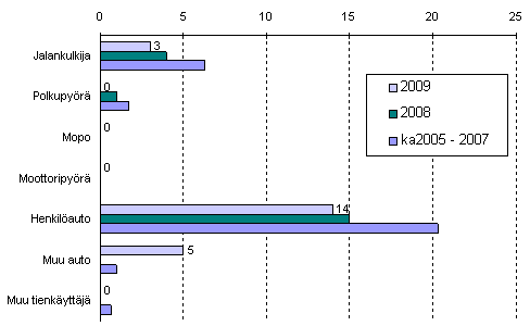 Tieliikenteessä kuolleet tienkäyttäjäryhmän mukaan tammikuussa 2009