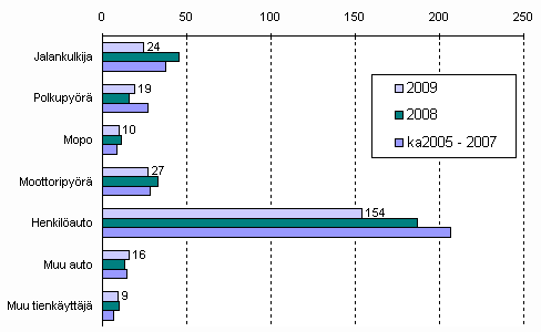 Tieliikenteessä kuolleet tienkäyttäjäryhmän mukaan tammi-marraskuussa 2009