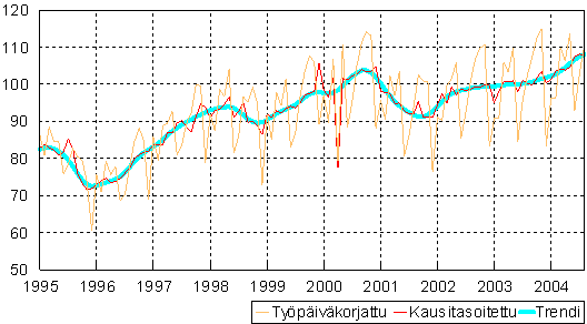 teollisuustuotannon volyymi-indeksi 1995 -2004 elokuu,