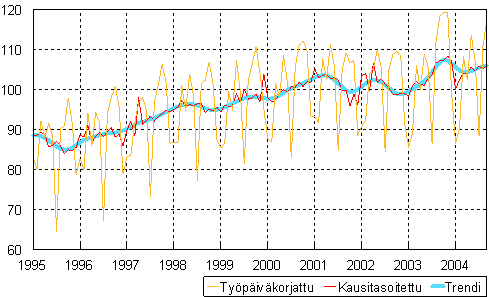 teollisuustuotannon volyymi-indeksi 1995 - 2004 syyskuu,