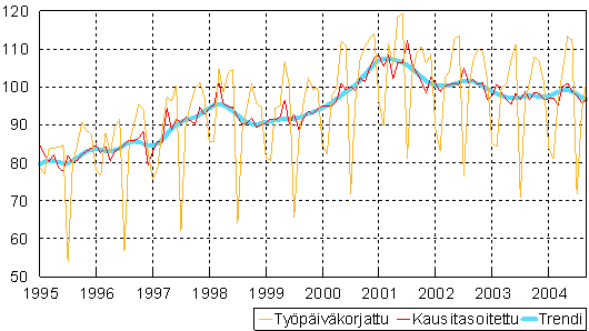 teollisuustuotannon volyymi-indeksi 1995 -2004 syyskuu,