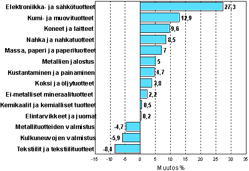 Teollisuustuotannon kausitasoitettu muutosprosentti lokakuu 2003 / lokakuu 2004