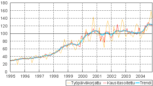 teollisuustuotannon volyymi-indeksi 1995 -2004 marraskuu,
