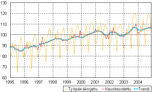 teollisuustuotannon volyymi-indeksi 1995 - 2004 joulukuu,