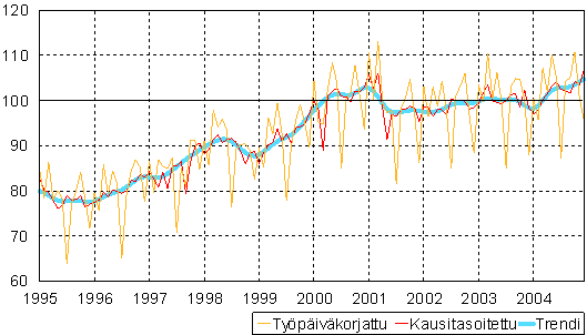 teollisuustuotannon volyymi-indeksi 1995 -2004 joulukuu,