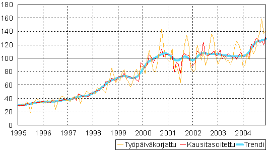 teollisuustuotannon volyymi-indeksi 1995 -2004 joulukuu,