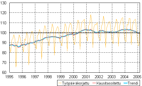 teollisuustuotannon volyymi-indeksi 1995 - 2005 maaliskuu,