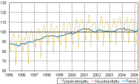 teollisuustuotannon volyymi-indeksi 1995 - 2005 huhtikuu,
