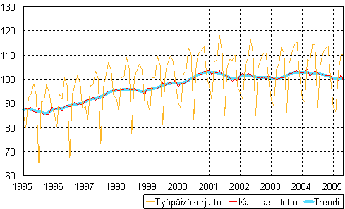 teollisuustuotannon volyymi-indeksi 1995 - 2005 toukokuu,