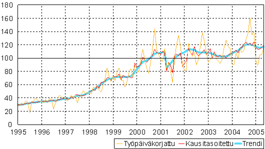 teollisuustuotannon volyymi-indeksi 1995 -2005 toukokuu,