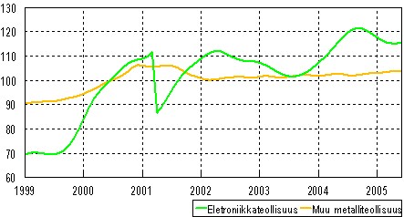 (Elektroniikkateollisuus ja muu metalliteollisuus), 2000=100