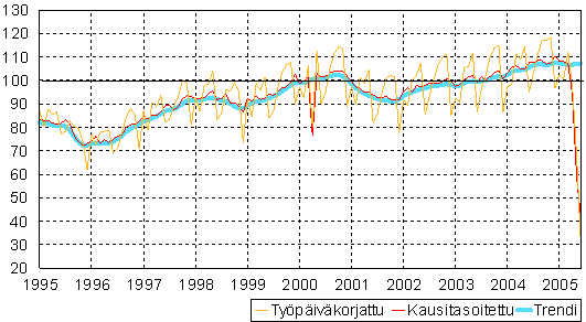 teollisuustuotannon volyymi-indeksi 1995 -2005 kesäkuu,