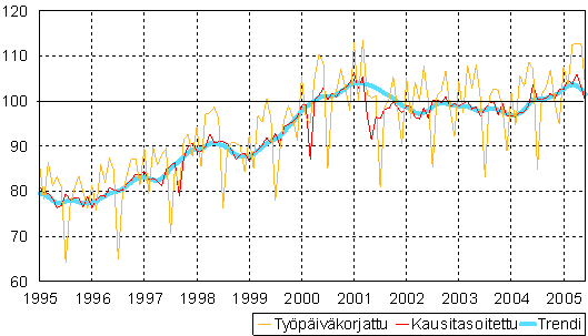 teollisuustuotannon volyymi-indeksi 1995 -2005 kesäkuu,