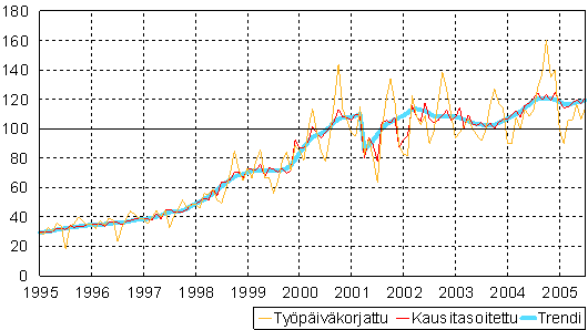 teollisuustuotannon volyymi-indeksi 1995 -2005 heinäkuu,