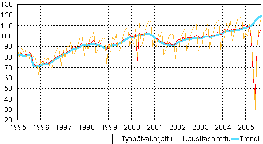 teollisuustuotannon volyymi-indeksi 1995 -2005 syyskuu,