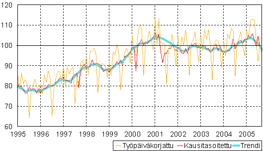 teollisuustuotannon volyymi-indeksi 1995 -2005 syyskuu,