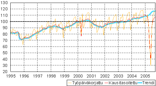 teollisuustuotannon volyymi-indeksi 1995 -2005 lokakuu,