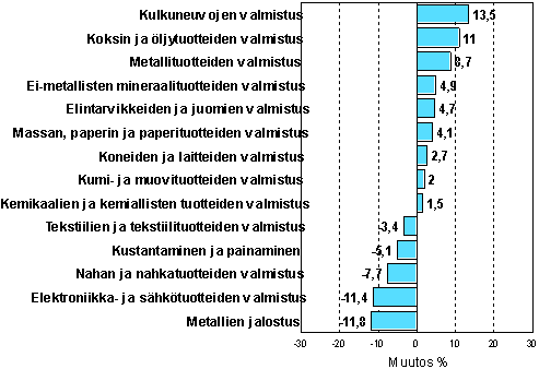 Teollisuustuotannon kausitasoitettu muutosprosentti