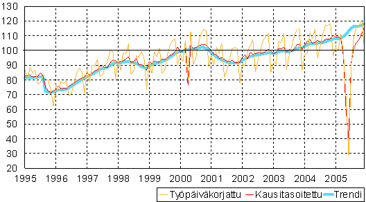 teollisuustuotannon volyymi-indeksi 1995 - 2005 joulukuu,
