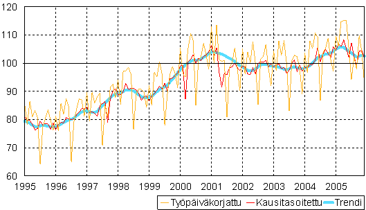 teollisuustuotannon volyymi-indeksi 1995 - 2005 joulukuu,