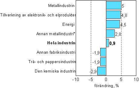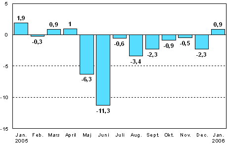 I januari 2006 var den säsongrensade industriproduktionen enligt Statistikcentralen 0,9 procent större än i januari 2005. Nedgången inom industriproduktionen, som pågått nästan hela fjolåret, ser ut att ha avstannat.