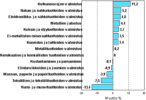 Teollisuustuotannon kausitasoitettu muutosprosentti