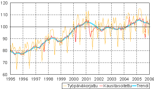 teollisuustuotannon volyymi-indeksi 1995 - 2006 tammikuu,
