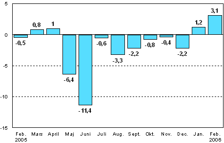 I februari 2006 var den säsongrensade industriproduktionen enligt Statistikcentralen 3,1 procent större än i februari 2005. Tillväxten av industriproduktionen har i början av året varit stark.