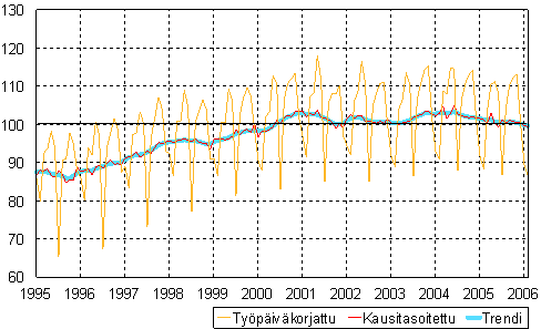 teollisuustuotannon volyymi-indeksi 1995 - 2006 helmikuu,