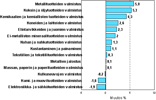 Teollisuustuotannon kausitasoitettu muutosprosentti