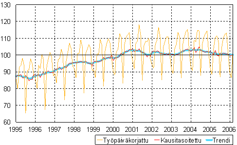 teollisuustuotannon volyymi-indeksi 1995 - 2006 maaliskuu,