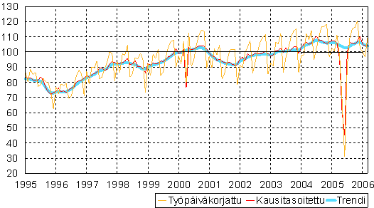 teollisuustuotannon volyymi-indeksi 1995 - 2006 maaliskuu,