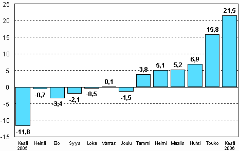 Teollisuuden kausitasoitettu tuotanto oli Tilastokeskuksen mukaan vuoden 2006 kesäkuussa 21,5 prosenttia suurempi kuin vuoden 2005 kesäkuussa. Teollisuustuotannon kasvu on ollut alkuvuonna vahvaa. Tammi-kesäkuussa kausitasoitettu tuotanto kasvoi 9,5 prosenttia vuoden takaisesta.