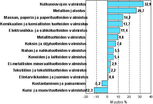 Teollisuustuotannon kausitasoitettu muutosprosentti