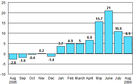 Trend in industrial output 1999-2006, August