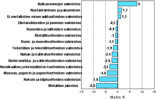 Teollisuustuotannon kausitasoitettu muutosprosentti heinäkuu 2006 / elokuu 2006