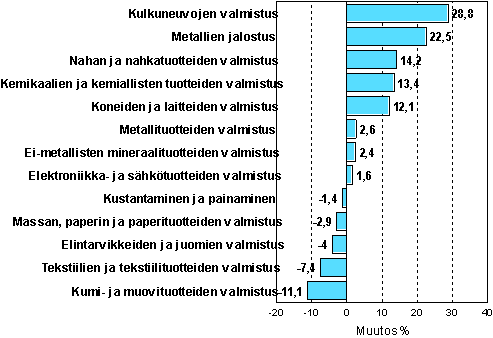Teollisuustuotannon kausitasoitettu muutosprosentti syyskuu 2005 / syyskuu 2006