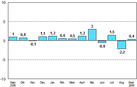I september 2006 var den säsongrensade industriproduktionen enligt Statistikcentralen 0,4 procent större än i augusti. Den säsongrensade industriproduktionsvolymen ökade i september med 7,6 procent jämfört med september år 2005.